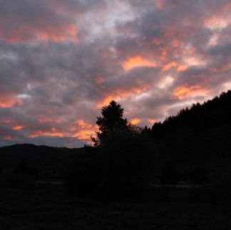 I drove to the Sawtooths Saturday evening, taking the route northwest along the Lost River Range, then turned southwest in Challis to Stanley. This stretch of highway follows the Salmon river for miles upon miles along exceptionally curved roads. The scenery is like something out of an old Western. Rugged country surrounds you on all sides as you slip back in time to a simpler life. You can almost see the gold rush unfold on the river below, or see fur trappers, or distant smoke from native tribes. As you exit the canyon and enter Stanley, the Sawtooths give you a grand welcome, immediately taking space along the entire western horizon, literally cutting the sky in front of you! This is my preferred way to see these mountains for the first time. Granted, from the southern pass you can see a bird's eye view of these mountains, something about the sudden wall of sharp peaks from the north just stops me in my tracks every time! I stopped at Redfish lake for some meditation time and a small rest after driving 4 hours to get there. I then proceeded to my usual camping spot in the forest several miles south where designated camping is no longer required. As I began the drive along the dirt forest road, the sky erupted into soft peach-red fire as the setting sun lit up the falling rain and the low hanging storm clouds. I couldn't believe my eyes! The contrast from the sky to the dark mountains below, was too much for my camera to truly capture. I chose instead to set the camera aside and simply bask in the glory of it all. I spent the night in my car as it rained on and off all night, plus a curious critter scratched and pawed at the bottom of my car all night. I felt much safer inside a metal case, rather than one made of thin fabric.