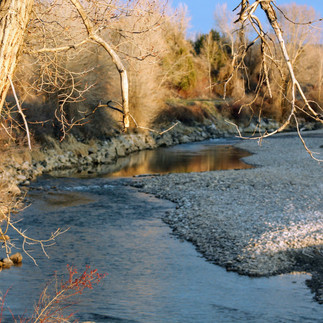 This week's adventures took me again to the Snake River at Cress Creek, a local favorite, for a several mile walk along the river to the railroad bridge there. The evening light cast long shadows and brilliantly accentuated the reds and oranges of the undergrowth lining the channel.