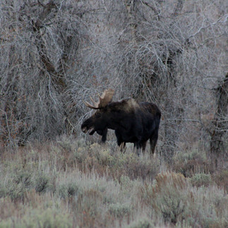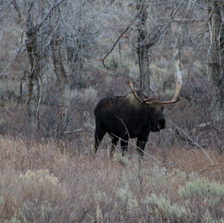 Today's journey was centered on my hope to find moose in full antler with the incredible backdrop of the Tetons to top it off! I had confidence I would find at least one as this is the close of rutting season and the moose are particularly active! Little did I know I wouldn't find just one or two, but 15 moose!! They were all over the river valley, often grouping with three or four others! I even found a famous bull named Hoback!
